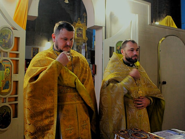 Під час літургії Його Високопреосвященству співслужили клірики храму.