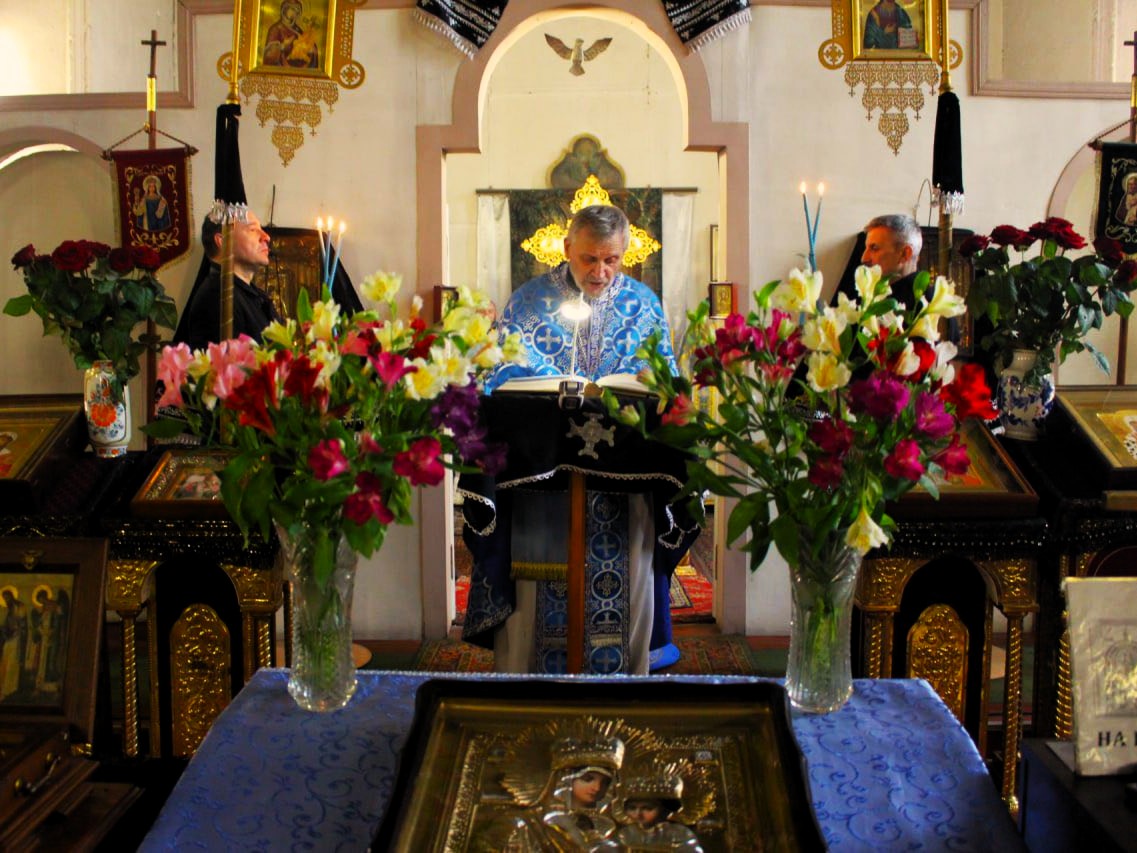 Під час святкової літургії правлячому архієрею співслужили настоятель храму протоієрей Віктор Маринчак та духовенство Харківської єпархії. У спільній молитві церковна громада просила заступництва Божої Матері для українських захисників, допомоги для всіх нужденних та справедливої перемоги для нашої держави.