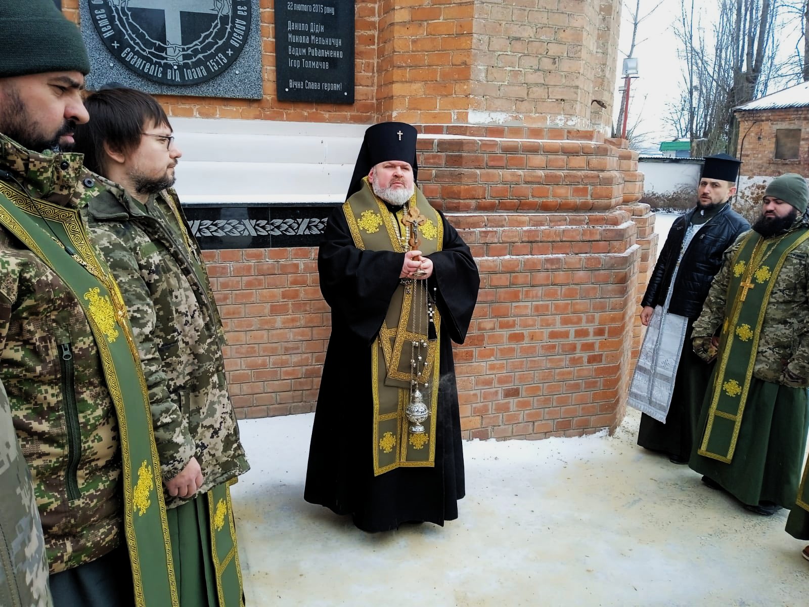 Біля меморіальної дошки, встановленої на честь загиблих харків'ян, Високопреосвященніший архієпископ Харківський і Слобожанський Митрофан звершив панихиду. У богослужінні взяли участь духовенство Іоанно-Богословського храму та капелани Харківської єпархії, які спільно молилися за упокій душ полеглих героїв.